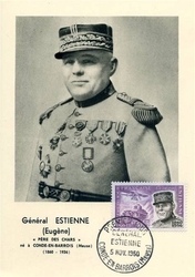 | Personnage : |  | Jean Estienne (1860-1936), général, a développé l'artillerie et l'aviation militaire.