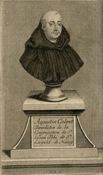 | Personnage : |  | Augustin Calmet, connu sous le nom de Dom Calmet, né le 26 février 1672 à Ménil-la-Horgne et mort le 25 octobre 1757 à Senones, est un exégète et érudit lorrain, bénédictin de la congrégation de Saint-Vanne et Saint-Hydulphe.